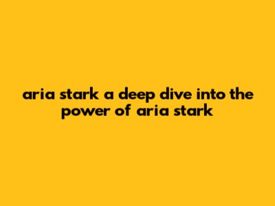 Aria Stark: A Deep Dive Into The Power Of Aria Stark