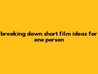 Breaking Down Short Film Ideas For One Person