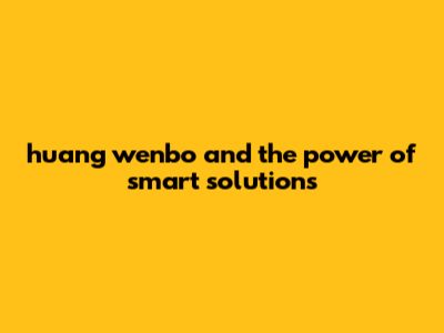 Huang Wenbo And The Power Of Smart Solutions