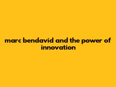 Marc Bendavid And The Power Of Innovation
