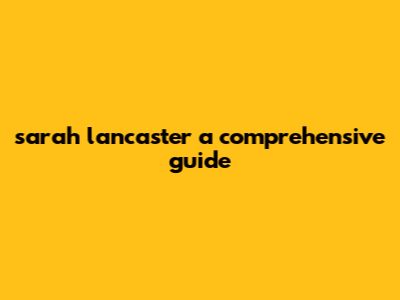 Sarah Lancaster: A Comprehensive Guide