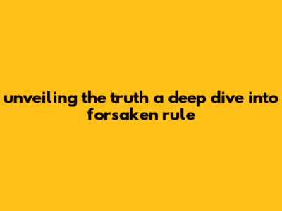Unveiling The Truth: A Deep Dive Into 'Forsaken Rule